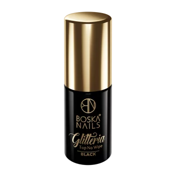 BOSKA NAILS Top hybrydowy No Wipe Glitteria BLACK - 6ml