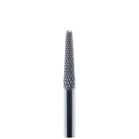 Bardzo delikatny frez z węglika spiekanego w ształcie malutkiego stożka z drobnymi krzyżowymi nacięciami. Przeznaczony do pracy zarówno na sucho jak i na mokro. Idealny do delikatnego usuwania resztek hybrydy przy walach okołopaznokciowych jak również do opracowywania skórek.Sprawdzi się również przy zabiegach podologicznych- wygładzenie zrogowaciałych paznokci, opracowanie przypaznokciowych odcisków, jak również grubej skóry przy wale paznokciowym.Frez nadaje się do dezynfekcji i sterylizacji. Pasuje do każdej frezarki typu "twist and lock"