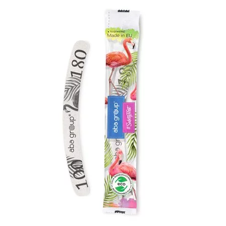 Jednorazowe pilniki do paznokci Aba Group o gradacji 100/180, dedykowane do użytku profesjonalnego. Pilniki przeznaczone są do pracy z masą żelową i akrylową, zalecane do zabiegów wymagających efektywnego, a jednocześnie bezpiecznego opiłowywania, skracania, czy też do wstępnej obróbki paznokci.