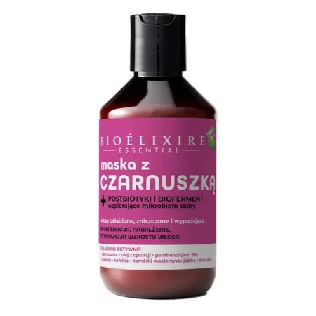 MASKA Bioelixire z Czarnuszką: Maska wzbogacona o olejek z czarnuszki zawierający witaminy takie jak: A, E, F, B1, B3, B6 oraz biotynę. Działa wzmacniająco, odbudowując i energetyzując włosy. Wspomaga porost włosów i zwalczanie łupieżu. Działa wspomagająco w walce z wypadaniem włosów. Maska pozostawia włosy gładkie i lśniące, jednocześnie ułatwiając ich rozczesywanie.
