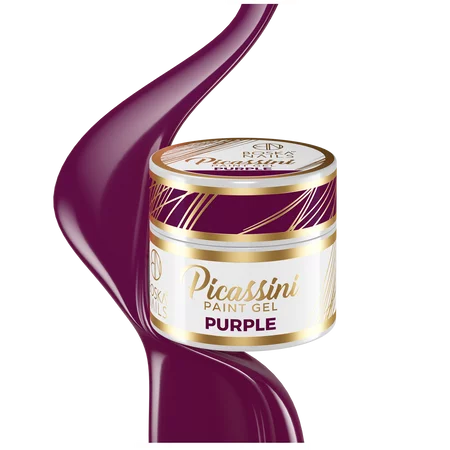 Picassini Paint Gel Purple: Głęboki bakłażanowy kolor o niezwykle wysokiej pigmentacji. Doskonały do tworzenia eleganckich wzorów oraz wieczornych stylizacji. Idealnie nadaje się do zdobień płaskich, takich jak one stroke,zhostovo, micropainting oraz ombre.