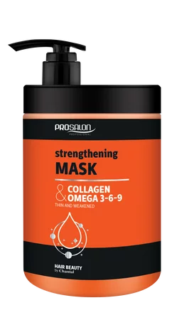 Maska wzmacniająca z kolagenem, profesjonalna maska przeznaczona do pielęgnacji włosów cienkich i osłabionych. Zawiera kolagen, który jest składnikiem budulcowym włosów, charakteryzuje się silnym działaniem wzmacniającym, ujędrianjącym i przeciw starzeniowym. Dodatek kwasów omega zapobiega uszkodzeniom włókien włosów, zmniejsza łamliwość i rozdwajanie się. Pomaga utrzymać właściwy poziom nawilżenia, ułatwia rozczesywanie, eliminuje plątanie się włosów.