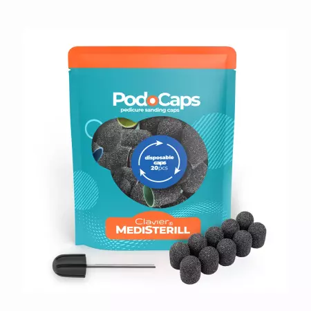 Kapturki ścierne MEDISTERILL do pedicure są dostępne w różnych kształtach i rozmiarach, aby pasowały do różnych rodzajów urządzeń. Najczęściej używane są kapturki na palce stóp, ale dostępne są także nakładki na pięty i stopy.