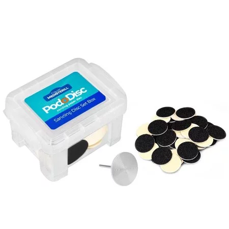 Jednorazowe nakładki ścierne na Pododisc gwarantują bezpieczny i higieniczny pedicure dla każdego klienta. Świetnie sprawdza się do obrabiania całej stopy, miejscowych modzeli, szorstkiej skóry na palcach, czy w przypadku polerowania płytki paznokcia. Narzędzie gwarantuje bezpieczny i higieniczny pedicure dla każdego klienta, gdyż od razu po zabiegu naklejka ścierna zostaje wyrzucona, a stalowa baza jest dokładnie zdezynfekowana i wysterylizowana. Pododisc jest nieocenionym pomocnikiem w codziennej pracy pedicurzystów i podologów. Łatwość wymiany tarczy ściernej to zdecydowany atut. Wystarczy zaledwie chwila i możesz zmienić nakładkę, a co za tym idzie zmieniać dowolnie gradację w zależności od potrzeb i rodzaju problemu z jakim się aktualnie zmagasz.