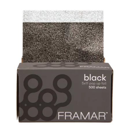 Profesjonalna czarna, wytłaczana folia fryzjerska o ostrych krawędziach. Folia łatwo się wysuwa dzięki wytłaczanemu wykończeniu. Nie sklejają się ani nie rozrywają po wyjęciu z pudełka. Wstępnie zagięta krawędź, dzięki czemu można ją łatwiej chwycić.
