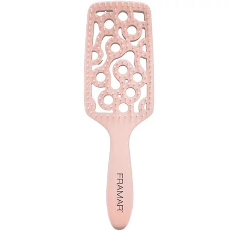Szybkie i łatwe stylizacje - tak można opisać szczotkę " I Need To Vent " marki Framar. Jej unikalny kształt i konstrukcja z dużymi otworami doskonale pozwalają ciepłemu powietrzu z suszarki przepływać, co umożliwia szybsze wysuszenie włosów podczas układania ich w zadbany sposób. Gładkie włosie z zaokrąglonymi końcówkami delikatnie współdziała z włosami, nie powodując żadnych uszkodzeń.