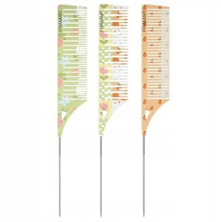Trzy różnej wielkości grzebienie, które szybko i łatwo rozdzielają włosy na grubsze i cieńsze sekcje podczas rozjaśniania. Niezastąpione w Twoim salonie fryzjerskim. Jeden prosty ruch grzebienia tworzy kilka równych odcinków gotowych do pomalowania. Każdy grzebień wyposażony jest w końcówkę ze stali nierdzewnej do rozdzielania i dzielenia. Nie elektryzuje się, zapobiega puszeniu i elektryzowaniu się włosów.