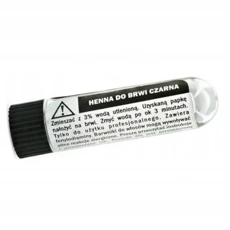 Sposób użycia: Hennę zamieszać z wodą 3% do uzyskania konsystencji gęstej zawiesiny / papki. Nałożyć na umyte brwi i rzęsy pędzelkiem lub szpatułką. Po około 3 minutach dokładnie zmyć wodą.