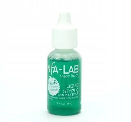 Profesjonalny środek w płynie Infa-Lab Magic Touch Liquid Styptic Skin Protector przeznaczony jest do hamowania krwawienia skórek, drobnych zacięć, niewielkich ran i skaleczeń. Działa natychmiastowo. Ma właściwości bakteriobójcze. Zawarty w składzie aloes działa kojąco na podrażnienia. Preparat ma również właściwości łagodzące. Nawilża oraz oczyszcza skórę. Użycie płynu Infa-Lab Magic Touch Liquid Styptic Skin Protector zmniejsza ewentualny dyskomfort związany z nieumyślnym, powstałym podczas wykonywania manicure lub stylizacji paznokci, uszkodzeniem delikatnych skórek wokół paznokcia. Wygodna w użyciu butelka pozwala na precyzyjne nałożenie preparatu na ranę.