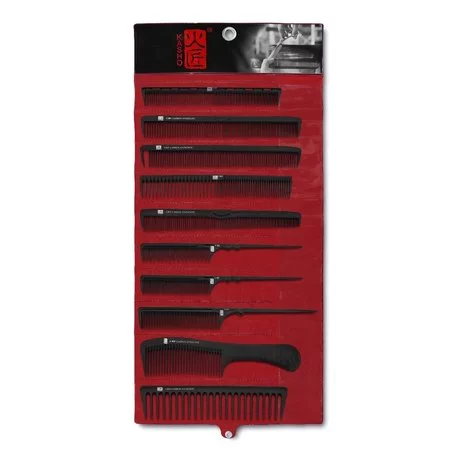 KASHO Zestaw grzebieni w pokrowcu Carbon Fiber - 10 sztuk