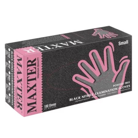 MAXTER Rękawiczki nitrylowe bezpudrowe CZARNE - S - 100 sztuk