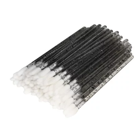 NAIL4U Aplikatory welurowe do błyszczyka - Czarne z brokatem - 50 sztuk