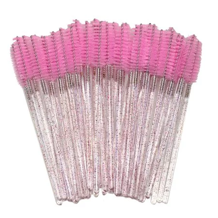 NAIL4U Szczoteczka do rzęs - Różowa z brokatem - 50 sztuk