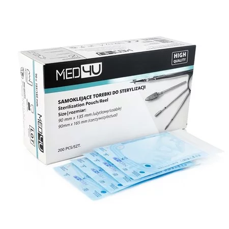 Samoklejące (self-sealing) torebki do sterylizacji małych narzędzi. Przeznaczone do sterylizacji parą wodną (STEAM) oraz tlenkiem etylenu (EtO). Okienko foliowe ułatwia identyfikację zawartości, a podwójne wskaźniki wewnętrzne i zewnętrzne wyraźnie potwierdzają przeprowadzenie procesu.