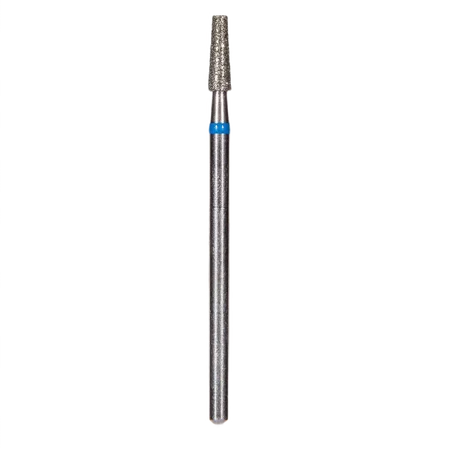 Bestsellerowy frez do manicure kombinowanego 1 z nasypem diamentowym ma kształt ściętego stożka. Świetnie sprawdza się w odsuwaniu wałów okołopaznokciowych oraz usuwaniu oskórka z płytek paznokci. Idealnie nadaje się również do frezowania zrogowaciałych wałów okołopaznokciowych i matowienia naturalnej płytki. Żeby nie stworzyć „rowków” na płytce należy pracować ściętą częścią frezu w kierunku wału.