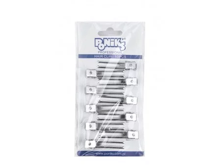 Metalowe klipsy fryzjerskie do włosów Ponik’s to niezbędny element każdego salonu. Klipsy o długości 4,5 cm pakowane są po 10 sztuk. Są wytrzymałe, wygodne i łatwe w użyciu. Doskonale sprawdzą się przy oddzielaniu pasm włosów oraz podczas wszelkich zabiegów fryzjerskich.
