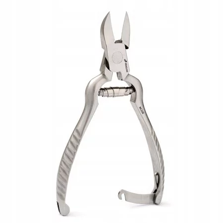 Cęgi do paznokci NC106 to specjalistyczne narzędzie do zabiegów podologicznych. Model ten jest niezwykle wytrzymały. Wyposażyliśmy go w mechanizm sprężynowy oraz zamek do zapinania ramion. Jego ostrza o standardowym kształcie są bardzo ostre, dzięki czemu pozwalają na precyzyjną pracę. Dolna część narzędzia posiada wyżłobienia co sprawia, że bardzo pewnie leżą w dłoni. Cęgi rekomendujemy do obcinania twardych paznokci.