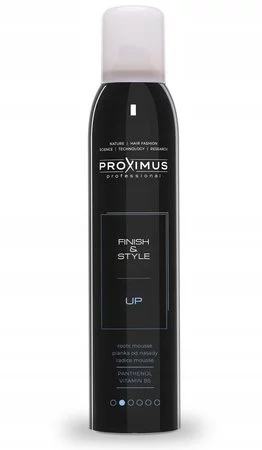 Średnio utrwalająca, profesjonalna pianka do włosów w sprayu Proximus podnosi włosy od nasady i nadaje objętości. Ułatwia rozczesywanie, pozostawia doskonały połysk. Dzięki zawartości pantenolu i witaminy B5, chroni cebulki włosowe, gwarantuje nawilżenie i ochronę skóry i włosów.