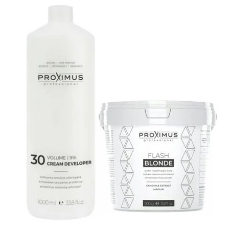 PROXIMUS Zestaw Rozjaśniacz do włosów FLASH BLONDE + Emulsja utleniająca oxydant 9%