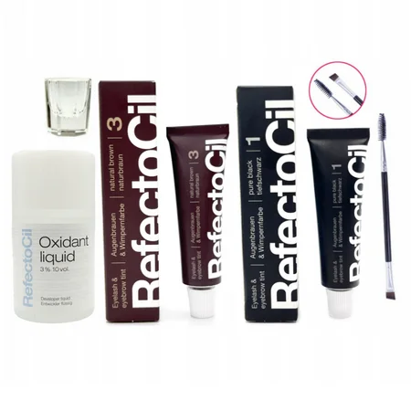 REFECTOCIL Henna żelowa CZARNA 1 + BRĄZOWA 3 + Woda 3% w płynie + Pędzelek + Kieliszek