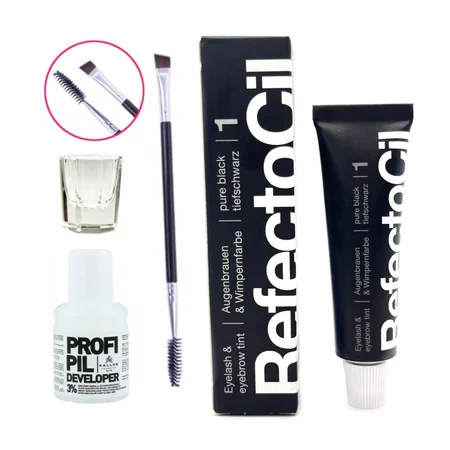 REFECTOCIL Henna żelowa CZARNA 1 + Woda Kallos 3% + Pędzelek + Kieliszek
