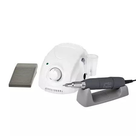 Regulacja prędkości przy użyciu pokrętła jest możliwa do 35 000 obrotów na minutę, co pozwala na dostosowanie do indywidualnych potrzeb, a co za tym idzie komfortowe wykonywanie szerokiej gamy zabiegów. Dodatkowo dioda kontrolna świeci w kolorze zielonym, ułatwiając rozpoznanie, czy frezarka pracuje na minimalnych obrotach. Praca z urządzeniem jest wyjątkowo łatwa, efektywna oraz intuicyjna, co zostanie docenione również przez bardziej wymagających użytkowników.