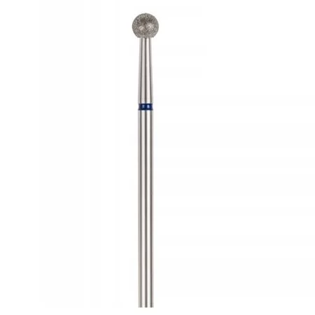 Diamentowy frez do usuwania skórek o kształcie kulki. Jego głowica ma średnicę 4 mm, co pozwala na precyzyjne i delikatne usuwanie skórek bez ryzyka uszkodzenia płytki paznokcia. Długość części roboczej wynosi 3.8 mm, co sugeruje, że frez jest zaprojektowany do szczególnie dokładnej pracy w małych obszarach.