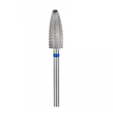 Zastosowanie karbidu wolframu gwarantuje dużą wytrzymałość narzędzia i sprawia, że jest ono odporne na zużycie, a także pozwala na precyzyjne opracowanie nawet bardzo twardych materiałów, jak utwardzony żel lub akryl. Ostra, wyraźnie zarysowana tekstura frezu pozwala na skuteczne ściąganie masy bez nadmiernego generowania ciepła, co jest kluczowe dla komfortu klienta i ochrony płytki paznokciowej.