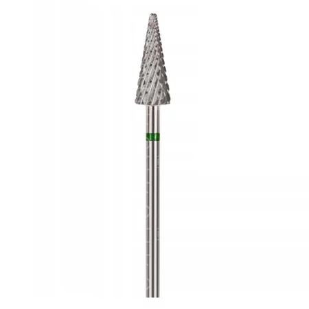 Frez karbidowy do opracowania masy SN02 - frez w kształcie stożka z zielonym paskiem.