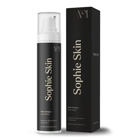 Krem matujący Sophie Skin to innowacyjna i szybko wchłaniająca się formuła, zawierająca naturalny surowiec Amylopectin, pochłaniający nadmiar sebum. Ponadto w recepturze znajdziesz kompleks seboregulujący, w jego skład wchodzi między innymi kofeina i biotyna. Krem Sophie Skin No.1 zapewnia tzw. fresh look – ujednolica koloryt skóry, maskuje przebarwienia (zaczerwienienia, zmiany trądzikowe, plamy pigmentacyjne). Po nałożeniu kremu Sophie Skin uzyskasz natychmiastowy efekt matowienia i optycznego rozproszenia światła. Drogocenny surowiec o nazwie Affipore zmniejsza wielkość i redukuje liczbę porów. Dodatkowo ekstrakt z kory wierzby, zapewnia działanie przeciwzaskórnikowe.